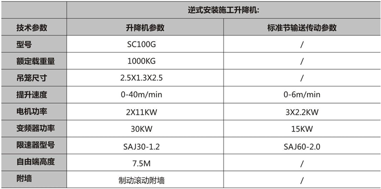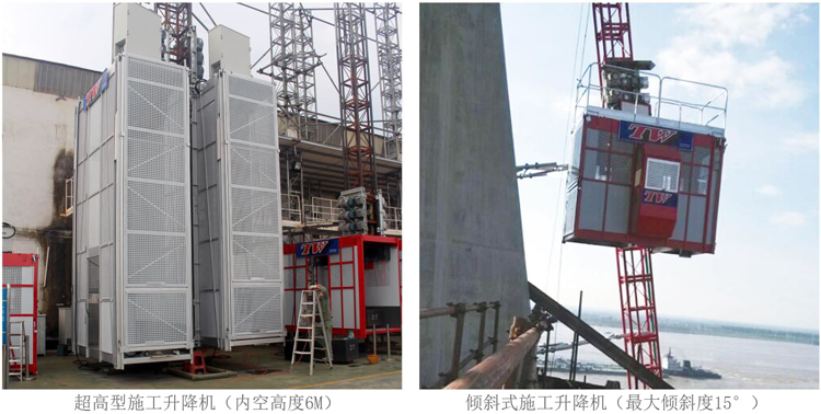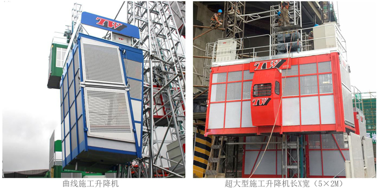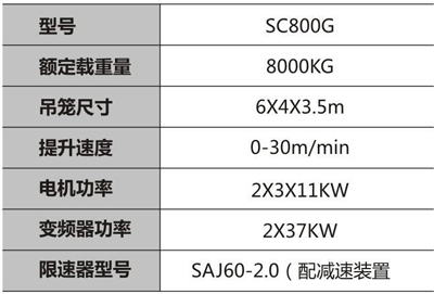SC系列特殊機型 SC800G雙柱施工升降機: 1.采用雙導軌結(jié)構(gòu),升降機采用變頻控制,運行平穩(wěn) 2.特制限速裝置,實現(xiàn)一個限速器兩端同步制停 3.超大型吊籠,用于運體積大、重量重貨物