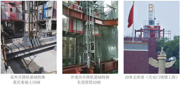 1.用于隧道、地鐵及高層基坑;2.升降機基礎(chǔ)在頂部,同時在頂部加高標準節(jié)再往下傳輸;3采用滾動型附墻及特殊傳送機構(gòu);4.輸送系統(tǒng)采用變頻控制,平穩(wěn)可靠。